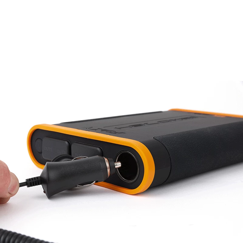 Fox Halo Power 48K, perfekte Stromquelle für das Aufladen einer Vielzahl von elektrischen Geräten• Kapazität: 153.6Wh / 13Ah @12V/48000mAh @3.2V• Zigarettenanzünder-Steckdose Ausgang: 12V 13A max• Anschlüsse: Dual USB, USB-C• Anzahl der Ladevorgänge für mobile Geräte: iPhone X / iPhone 8 Plus: Ca. 11-13 mal, iPhone 8: Ca. 16-18 Mal• Verwendet LiFePo4-Akkuzellen, die für den Außeneinsatz besser geeignet sind als Li-Polymer und eine konsistentere und zuverlässigere Energiequelle bei kälteren Temperaturen gewährleisten• Großes Biwaklicht an der Seite mit gelben und weißen LED-Optionen• Wird mit Ladegerät, Umschaltstecker und zwei Halterungen geliefert, die es ermöglichen, das Netzteil platzsparend auf dem Biwak-Tisch zu platzieren• Vier LED-Leuchten zeigen die verbleibende Akkulaufzeit an (alle vier Leuchten leuchten = 100% Ladung, 1 Leuchte = 25% Ladung übrig)• Abmessungen: 208mm x 148mm x 38mm• Gewicht: 1,5kg• DC Input: 12-24V/2A max• USB-C Eingang: DC5V/3A 9V/3A 15V/3A 20V/2.25A• USB-C Ausgang: DC5V/3A 9V/3A 12V/3A 15V/3A 20,3V/3A• USB-Ausgang 1: DC3,6-6,5V/3A 6,5-9V/2A 9-12V/1,5A• USB-Ausgang 2: DC5V/2,4A