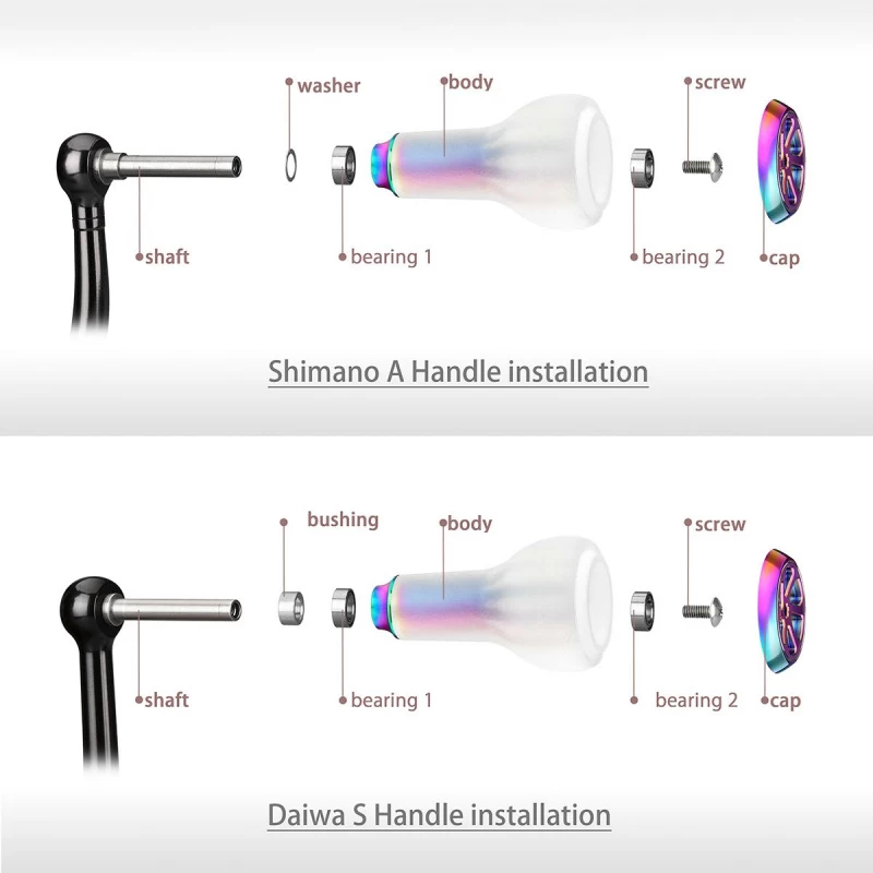 Geben Sie Ihrer Rolle eine einzigartige Note. Diese Knäufe sind von hoher Qualität, lassen sich leicht reinigen und bieten einen besseren Grip bei Nässe. Hergestellt aus umweltfreundlichem TPE, das eine Beständigkeit gegen das Verblassen der Farbe bietet. Erhältlich in verschiedenen Farben und Größen, passend zu Ihrer jeweiligen Rolle!20mm: 8,4gDiese sind am besten für kleinere Rollen in den Größen 500-2500 / 3000 geeignet, können aber auch an größeren Modellen angebracht werden. 27mm: 15,5gDiese sind am besten für große Rollen in den Größen 4000 und höher geeignet, können aber auch an kleineren Modellen angebracht werden.Direkte Passung für Shimano Spinnrollen Griff A: (16) Stradic CI4+ 1000 – 4000Ôºå(06) Sephia 2500, (09) Sephia 3000, (08) (10) (12) (17) Sephia CI4+ 3000, (07) Sephia BB 2500,(10) (11) (13) (18) Sephia BB 3000Direkt passend für Shimano Baitcasting-Rollen: Antares, Aldebaran, Bantam, Bass Rise, Bass One, Curado ,Calcutta ConquestÔºåChronarch, Cardiff, Casitas, MetaniumDirekt passend für Daiwa Spinnrollen Griffe S: Fuego LT , Ballistic EX LT 1000 – 4000ÔºåCaldia LT 1000 – 6000,Ôºà18ÔºâTatula LT 2000S-XH / 2500S / 2500S-XHDirekt passend für Daiwa Baitcasting reel: Zillion, Tatula, Steez, Ryoga